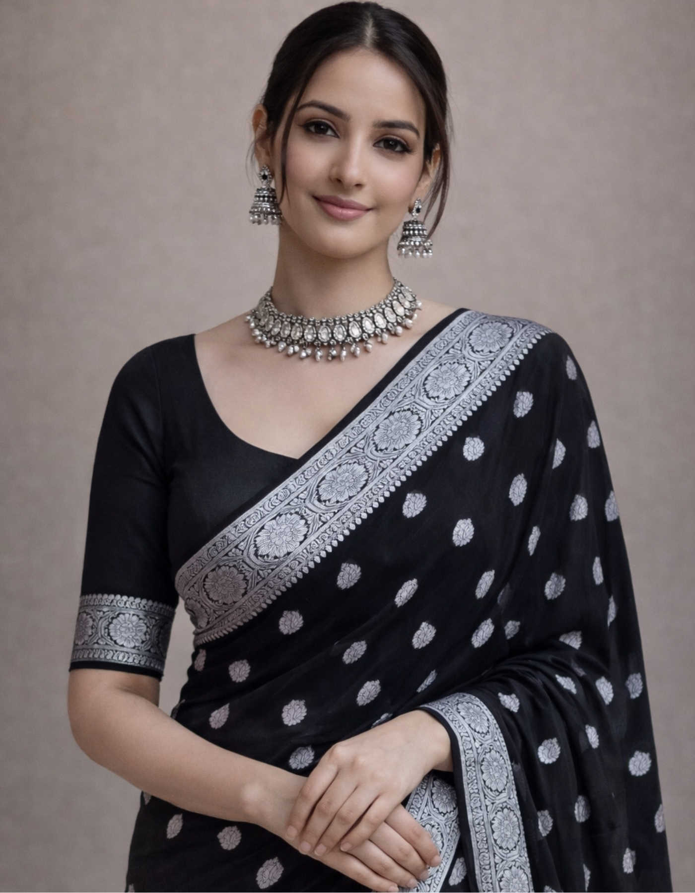 & Free ShippingPure Chiffon Saree with Silver Zari. Silk Mark Certified.